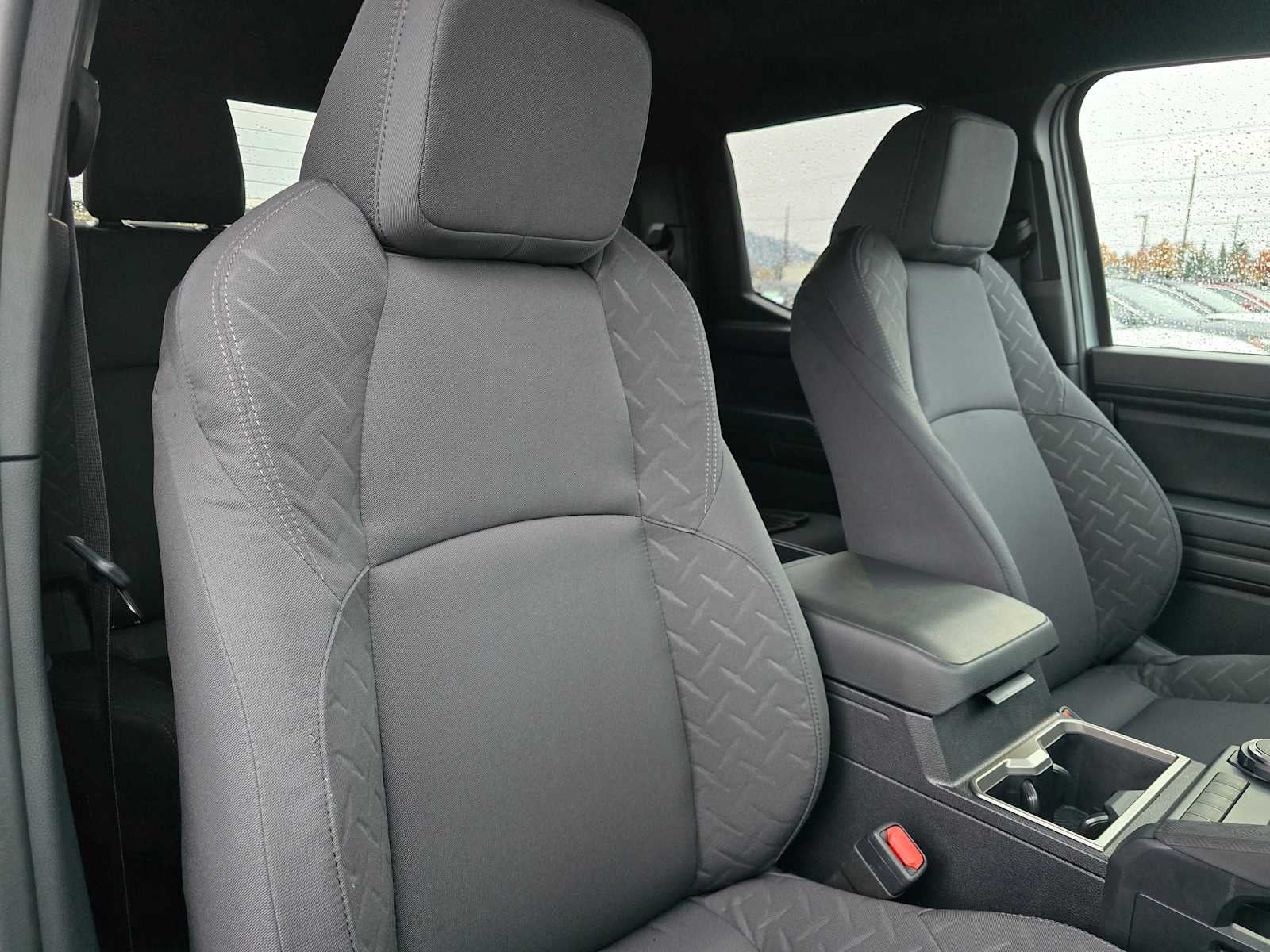 - Fabric-trimmed seats; 6-way manually adjustable driver and front passenger seats with 2-way power-adjustable lumbar support on driver's seat only