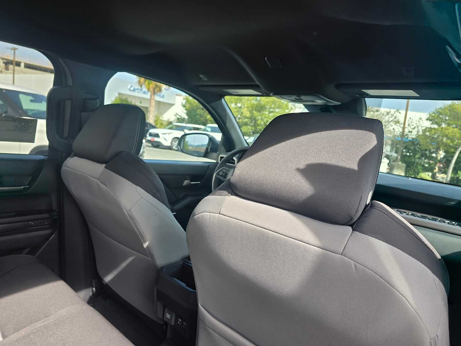 - Fabric-trimmed seats; 6-way manually adjustable driver and front passenger seats with 2-way power-adjustable lumbar support on driver's seat only