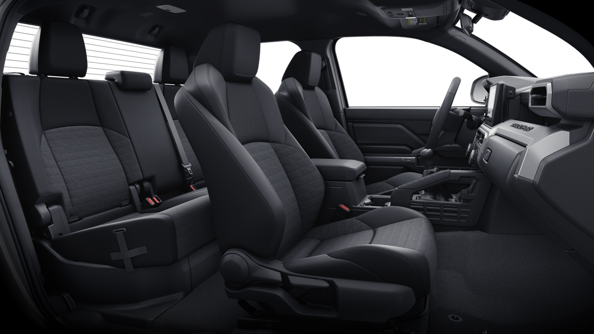 - Fabric-trimmed seats; 6-way manually adjustable driver and front passenger seats with 2-way power-adjustable lumbar support on driver's seat only