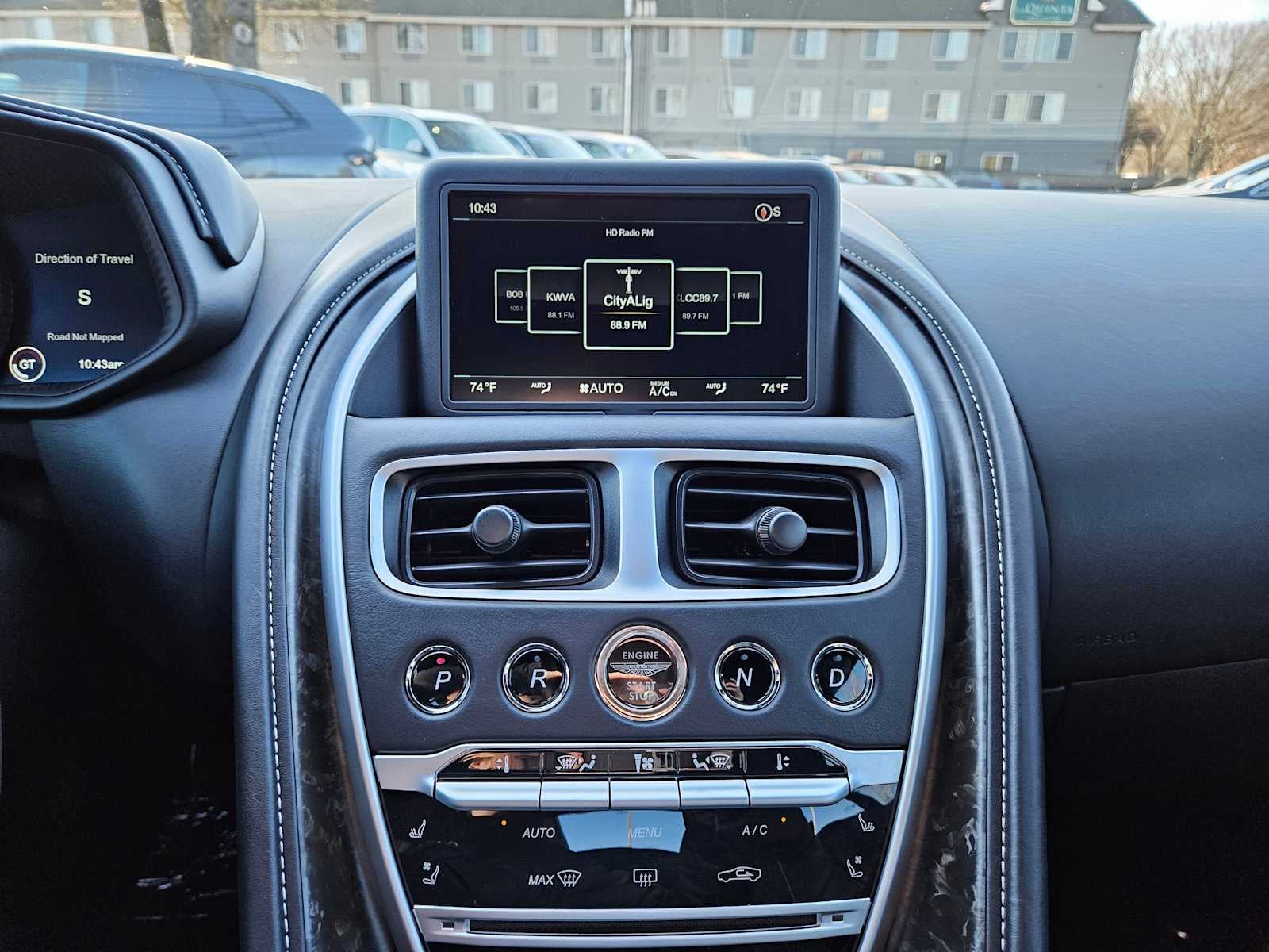 - Radio: AM/FM Infotainment System -inc: capacitive switching, 8.0" central LCD infotainment screen, A2DP Bluetooth® audio, phone streaming, Aston Martin audio system, iPod and iPhone integration, USB playback, satellite navigation system and satellite radio system
