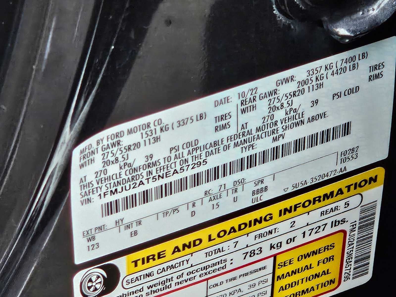 - Front Tire Size: P275/55HR20