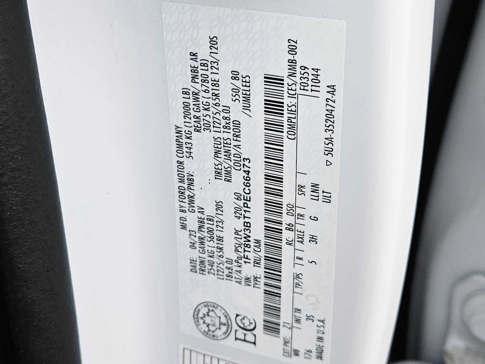 - Rear Tire Capacity (lbs): 6830